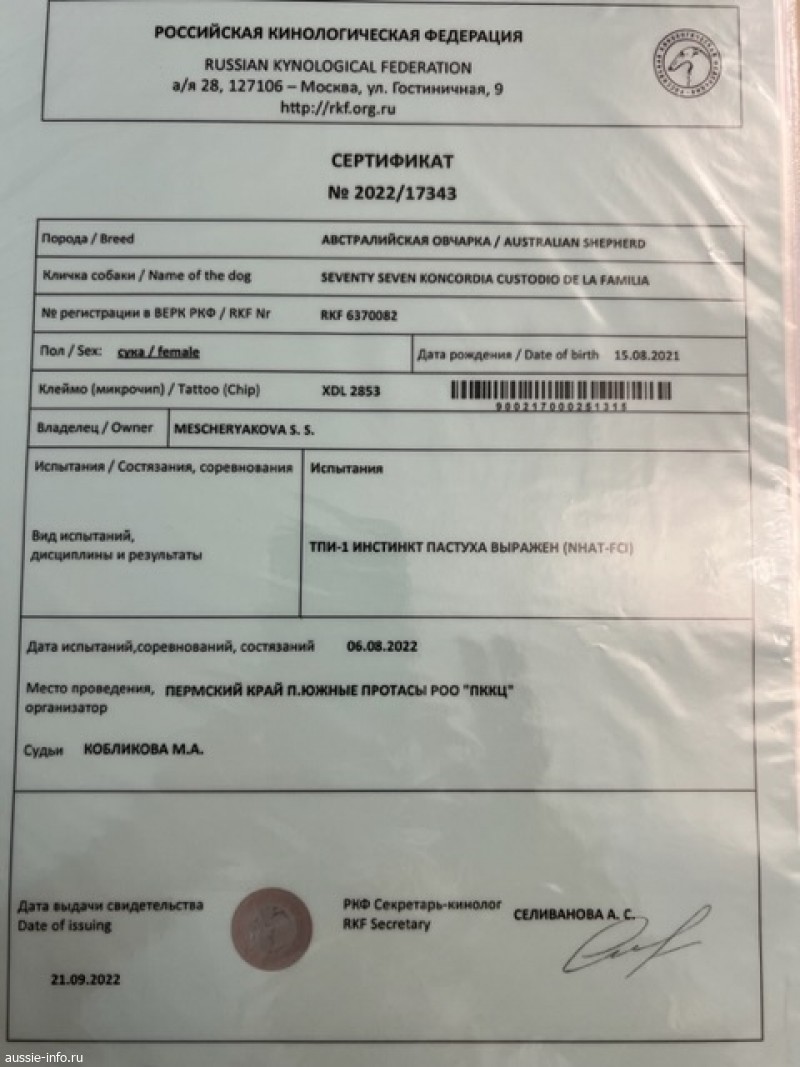 отл. - 1 CAC, ЧРКФ Best Female, Best of Breed
